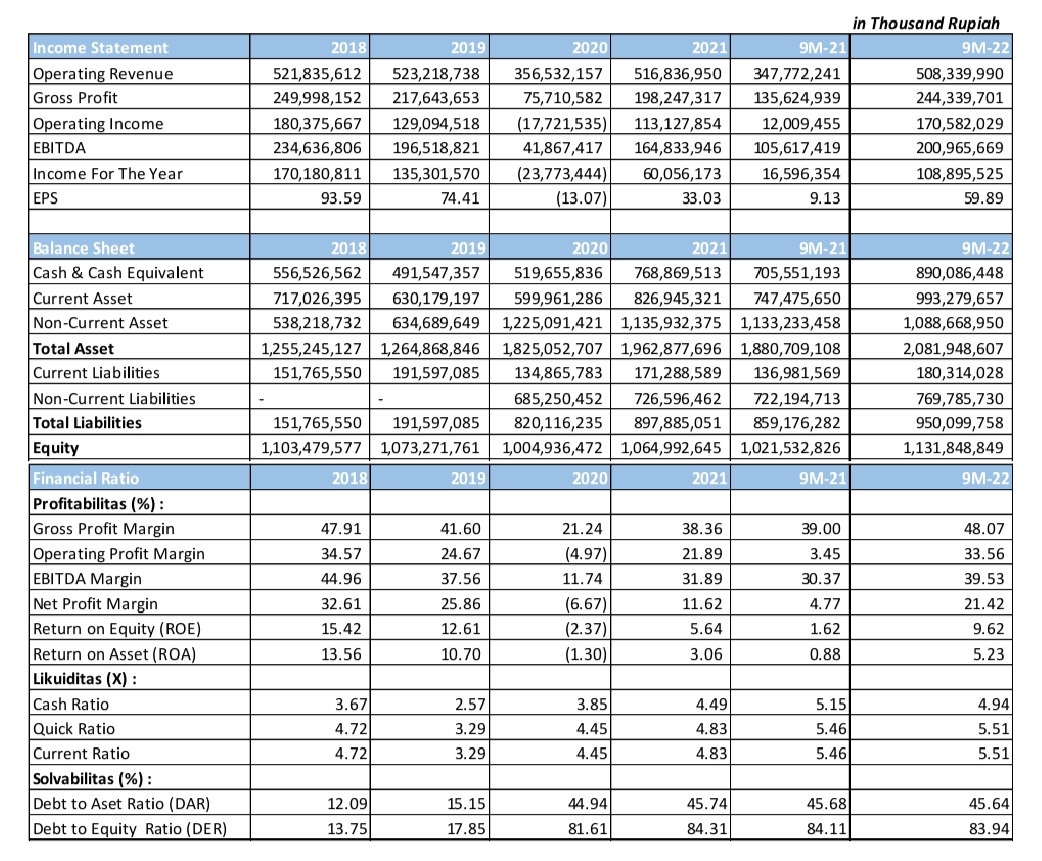 Tabel Kinerja Keuangan IPCC 9M-22