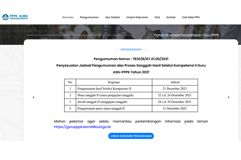Pengumuman hasil seleksi PPPK (Pegawai Pemerintah dengan Perjanjian Kerja) guru tahap 2 sebelumnya dua kali mundur dari jadwal semula. Awalnya hasil seleksi bakal diumumkan pada 16 Desember.