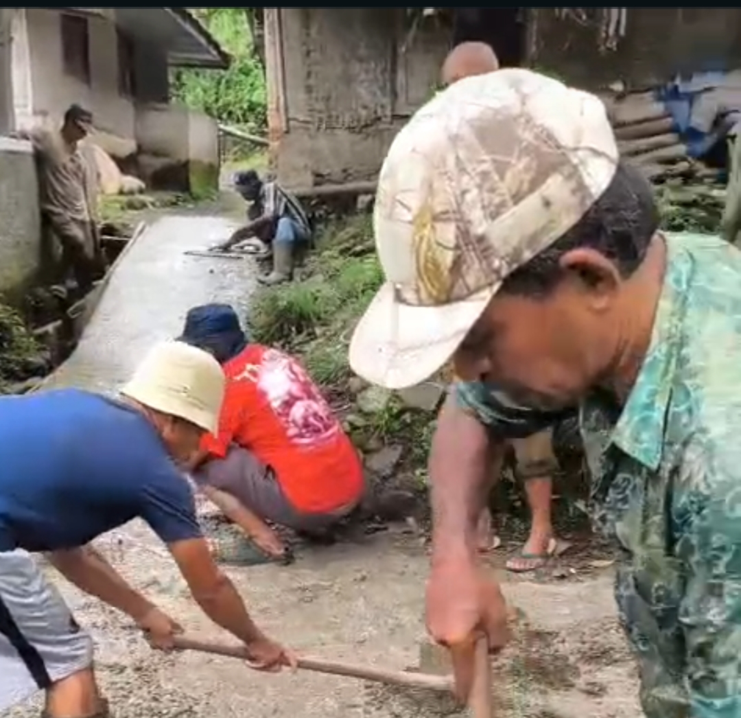 ‎Pada hari yang cerah ini, nampak puluhan warga dari berbagai usia dan profesi beramai-ramai turun ke jalan untuk melaksanakan kegiatan pengecoran jalan yang memiliki ukuran lebar 1 meter dan panjang 100 meter. Jumat, (13/02/26) pagi.
