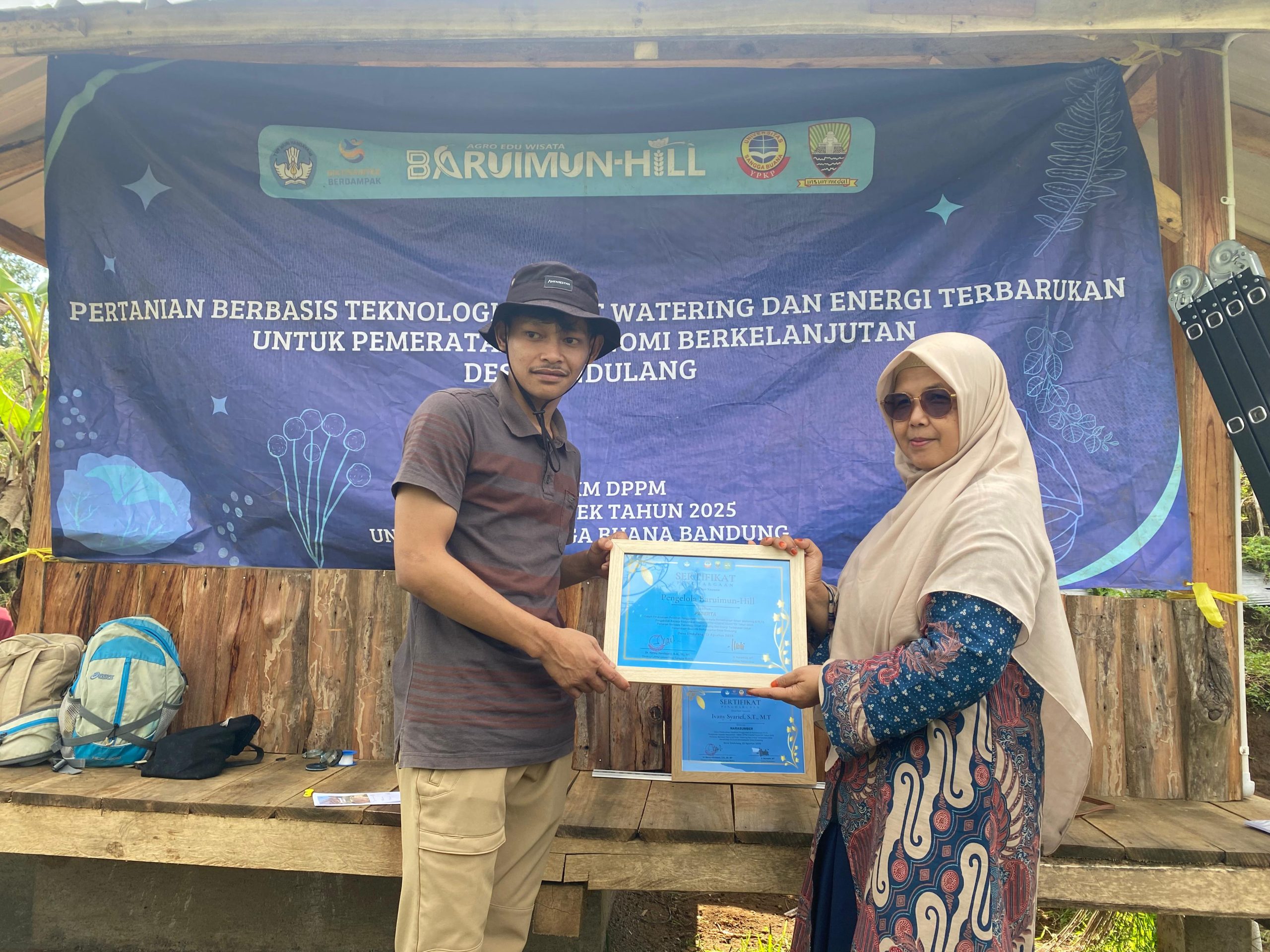 “Pelatihan ini diharapkan mampu memberikan manfaat nyata bagi Desa Sindulang, khususnya bagi kelompok tani pengelola Baurimun Hill. Penerapan teknologi seperti smart watering dan pembuatan PLTS Atap solar cell ditujukan untuk meningkatkan produktivitas sekaligus memastikan penggunaan sesuai prosedur sehingga dapat dimanfaatkan secara efektif dan efisien.” ujar ketua pelaksana, Ir. Nurwathi, MT., Jum’at 22 Agustus 2025.